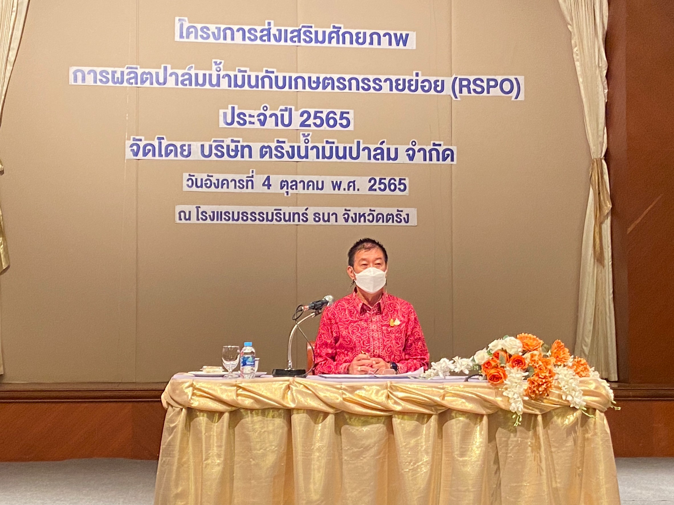 เมื่อวันที่ 4 ตุลาคม พ.ศ. 2565 บริษัท ตรังน้ำมันปาล์ม จำกัด ร่วมกับ บริษัท โกลบอลกรีนเคมิคอล จำกัด (มหาชน) ได้จัดอบรมสัมมนา ในโครงการส่งเสริมศักยภาพการผลิตปาล์มน้ำมันกับเกษตรกรรายย่อย (RSPO) ณ โรงแรมธรรมรินทร์ ธนา จังหวัดตรัง โดยได้รับเกียรติจากผู้ว่าราชการจังหวัดตรัง นายขจรศักดิ์ เจริญโสภา เป็นประธานในครั้งนี้
