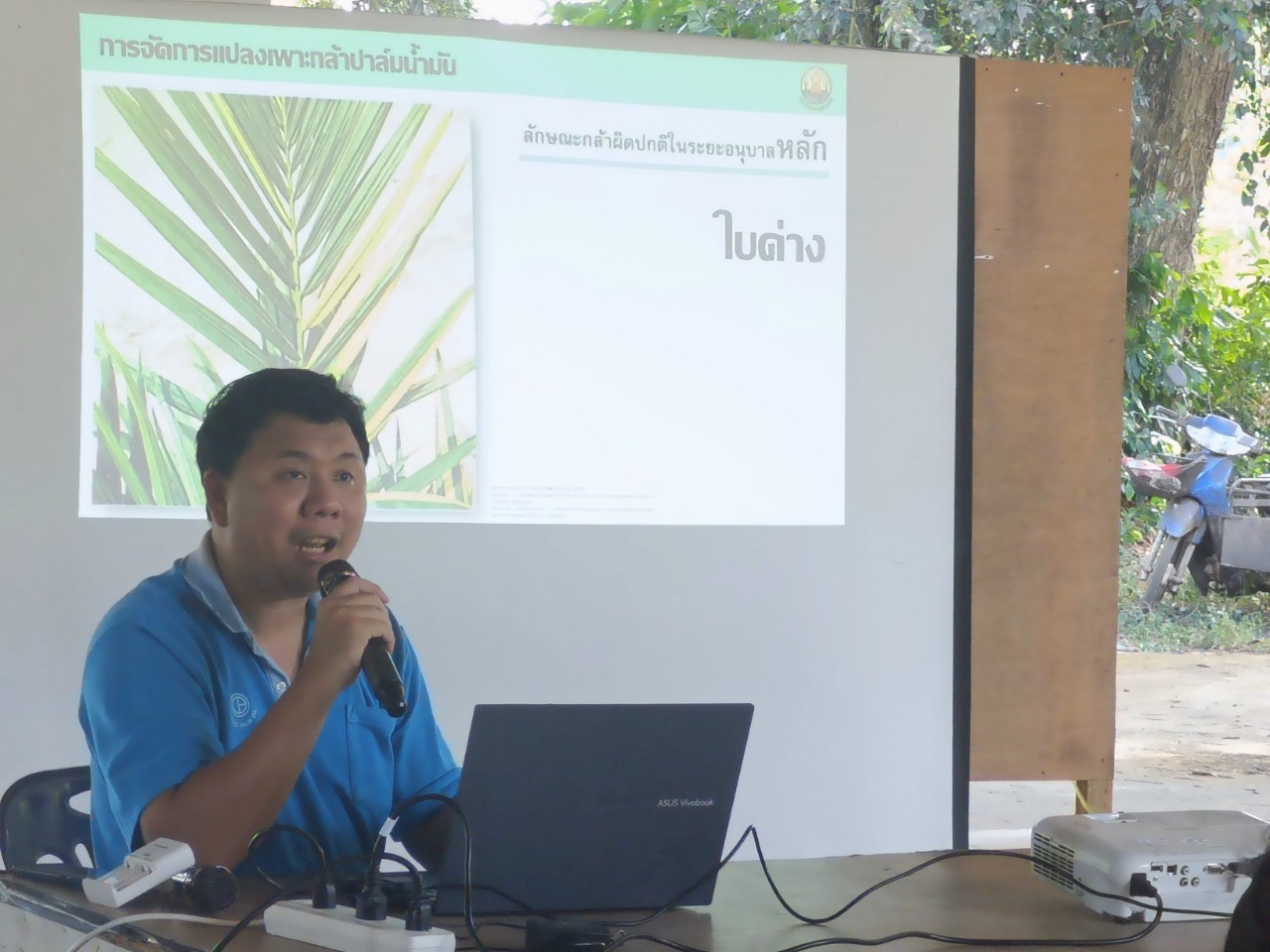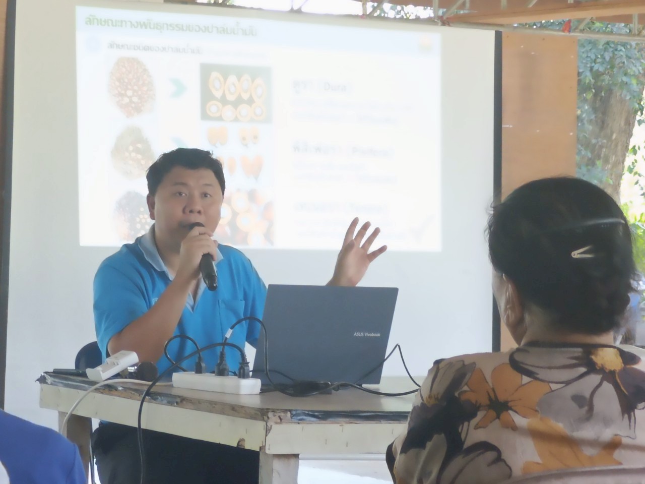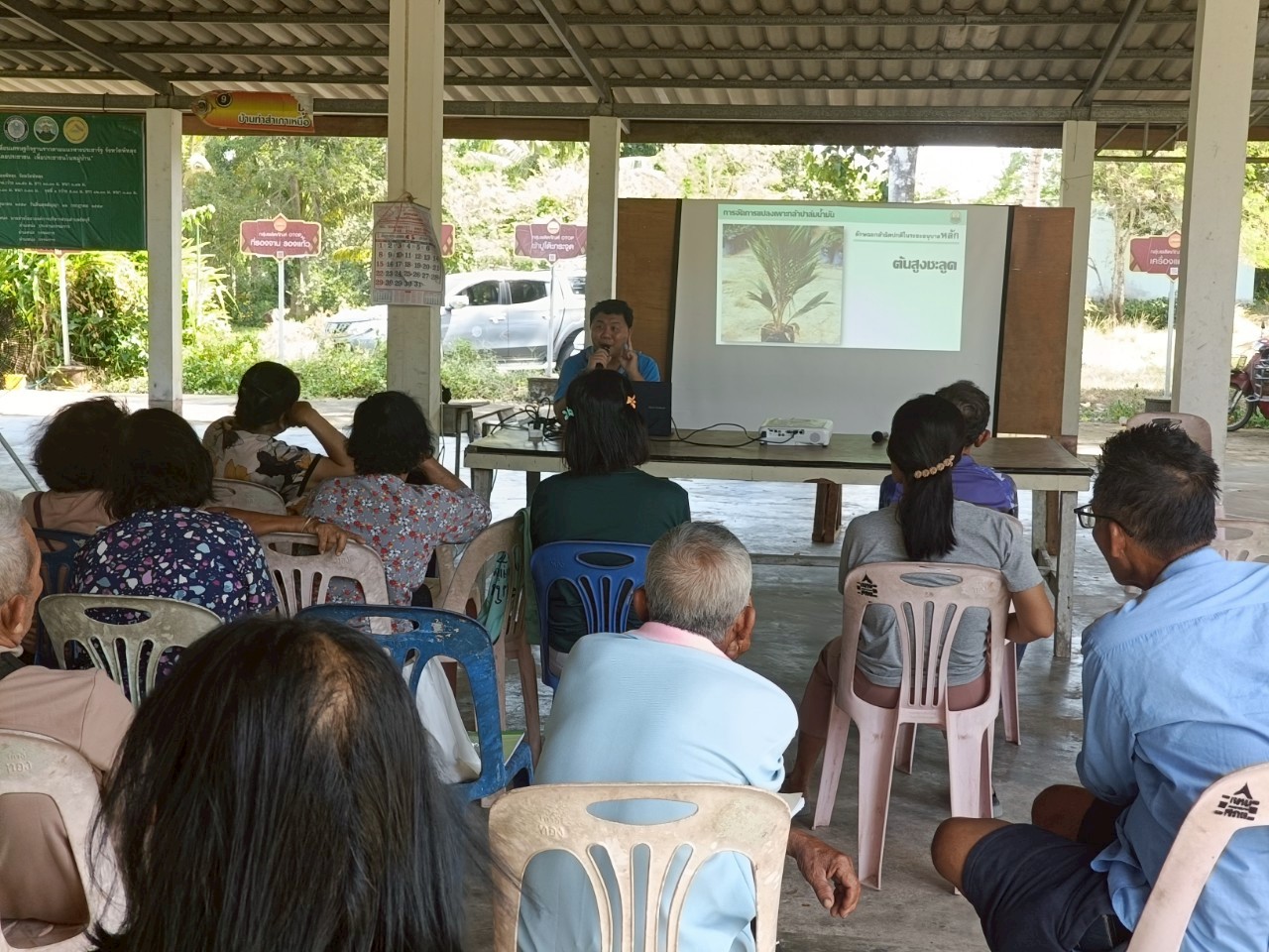 กิจกรรมเพิ่มประสิทธิภาพการผลิตปาล์มน้ำมันอย่างยั่งยืนตามมาตรฐานสากล ภายใต้กิจกรรมย่อยด้านการส่งเสริมกลุ่มเกษตรกรให้สามารถผลิตปาล์มน้ำมันได้อย่างยั่งยืนตามมาตรฐานสากล โดยมีเป้าหมายในการยกระดับกลุ่มเกษตรกรเข้าสู่มาตรฐาน RSPO จัดการอบรมหลักสูตร “การเพิ่มประสิทธิภาพการผลิตปาล์มน้ำมันอย่างยั่งยืนตามมาตรฐานสากล” ครั้งที่ 1 ณ แปลงใหญ่ปาล์มน้ำมัน หมู่ที่ 7 ตำบลชัยบุรี อำเภอเมืองพัทลุง จังหวัดพัทลุง